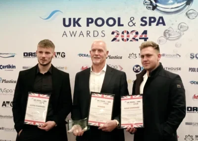 We were delighted and honoured to receive three awards at the prestigious 2025 UK Pool & Spa Awards:-