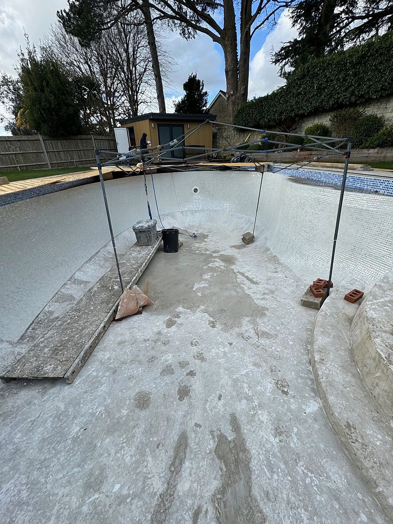 This project involved upgrading an existing fibreglass swimming pool with an automatic safety cover and full glass mosaic tile interior. Our clients wanted to enhance the safety and aesthetics of their pool. A key requirement was to make the pool safe with an automatic swimming pool safety cover. They also needed to upgrade the existing fibreglass coated interior to a full glass mosaic tiled interior, while retaining the kidney shaped pool design.