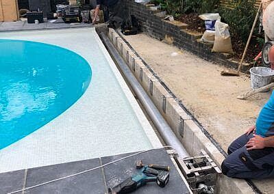 If you have an existing swimming pool without an automatic cover, you can retro-fit it with a modern integrated swimming pool safety cover system. While this requires some modifications to the pool structure, it provides a seamless built-in cover that enhances safety, lowers maintenance costs and improves energy efficiency. To integrate an automatic pool cover, some alterations need to be made such as removing and reinstalling the coping stones, carefully dismantling and rebuilding a chamber to allow space for the cover housing and track system. The result is a sleek, low-profile automatic safety cover that retracts fully into the housing when open.